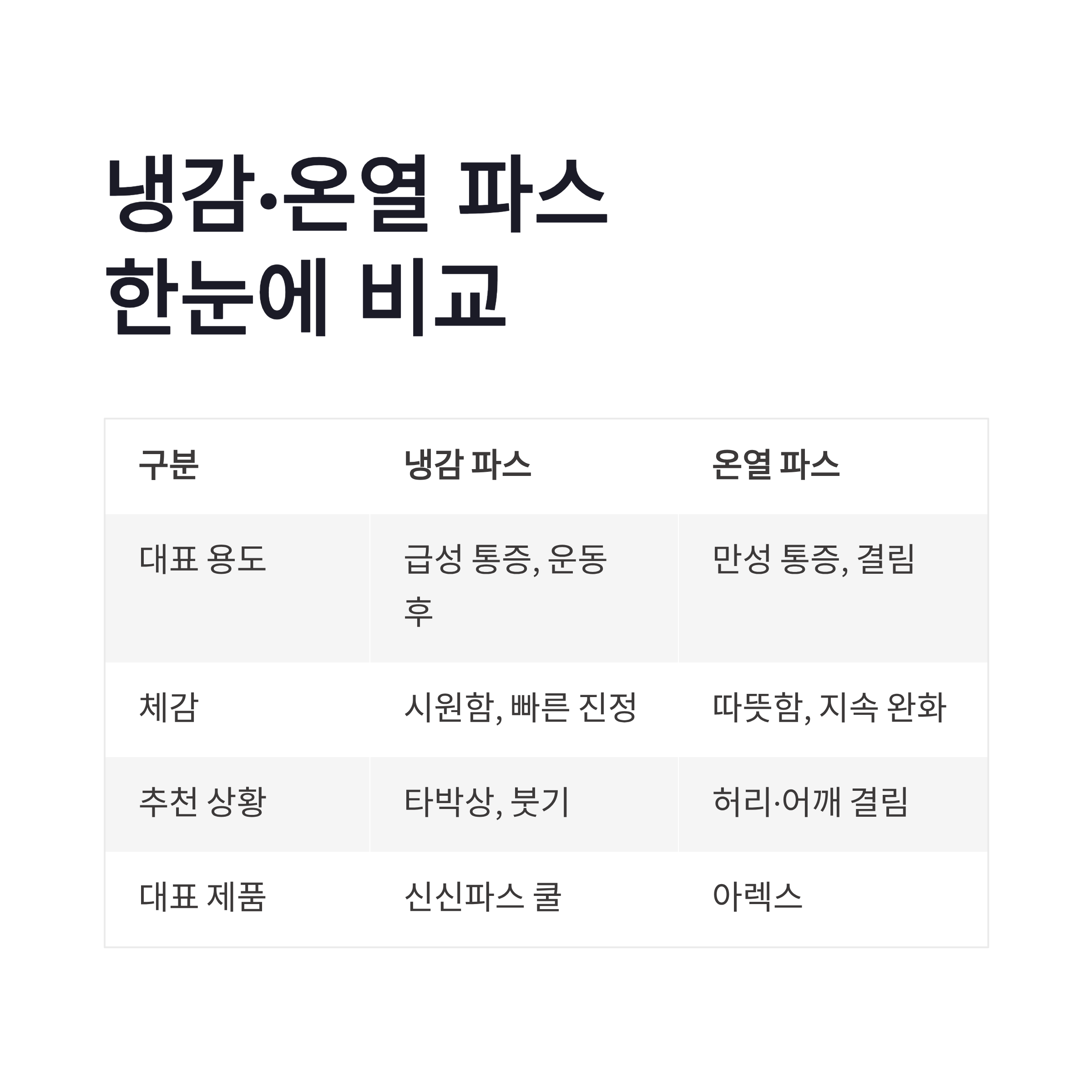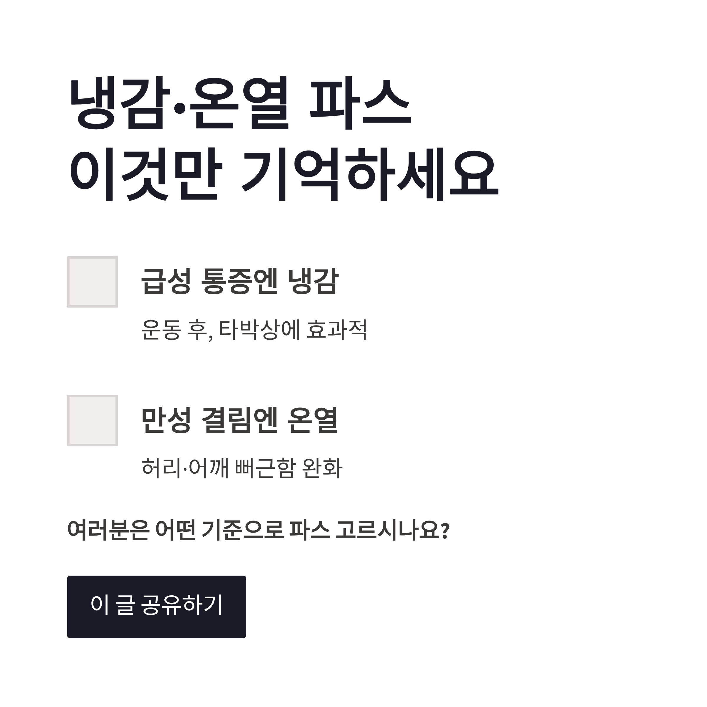 결론|냉감·온열 파스, 이렇게 고르면 실패 없음