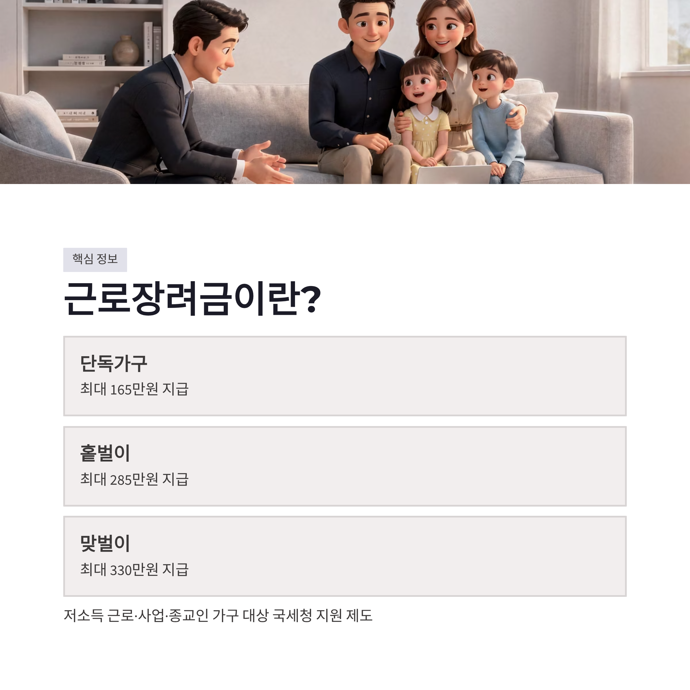요즘 근로장려금 문의전화 검색량이 확 늘었더라구요. 저도 신청 문자 받고 나서 괜히 심장이 쿵… “이거 제대로 된 거 맞나?” 싶어서 바로 찾아봤습니다 ㅠㅠ 근로장려금은 2026년 기준, 저소득 근로·사업·종교인 가구를 대상으로 최대 단독가구 165만원, 홑벌이 285만원, 맞벌이 330만원까지 지급되는 제도입니다(국세청 기준). 금액이 크다 보니 작은 오류에도 불안해지죠.