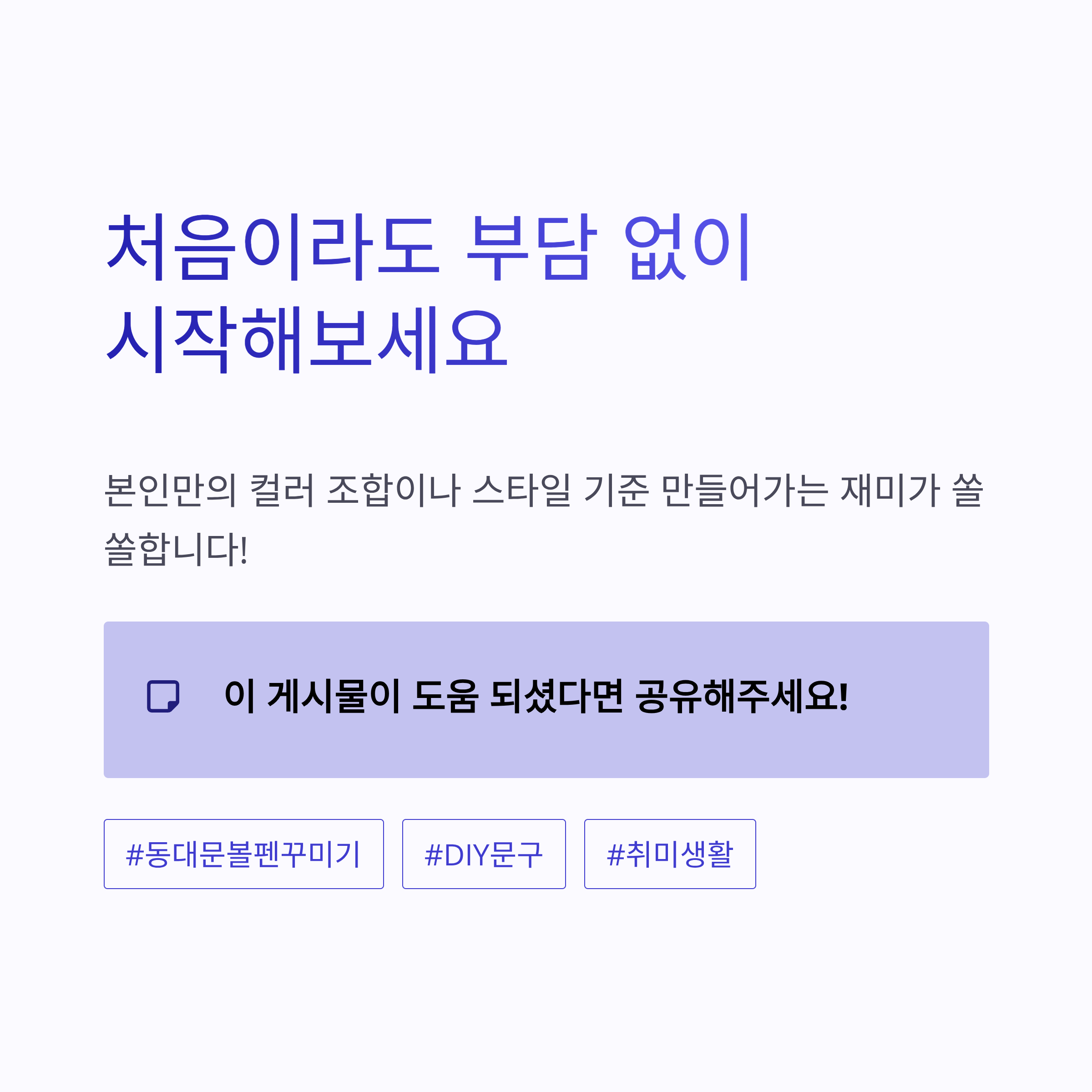 정리해보면 동대문 볼펜꾸미기는 돈 많이 안 들이고도 만족감 큰 취미 같더라구요. 나만의 감각이 그대로 남고, 매일 쓰는 물건이라 더 애착 가고요. 처음이라도 부담 없이 시작해보셔도 됩니다. 한 번 만들고 나면 “어? 하나 더?” 이런 생각 무조건 들어요 ㅎㅎ 혹시 본인만의 컬러 조합이나 스타일 기준 있으신가요? 저는 아직도 계속 바뀌는 중이네요.