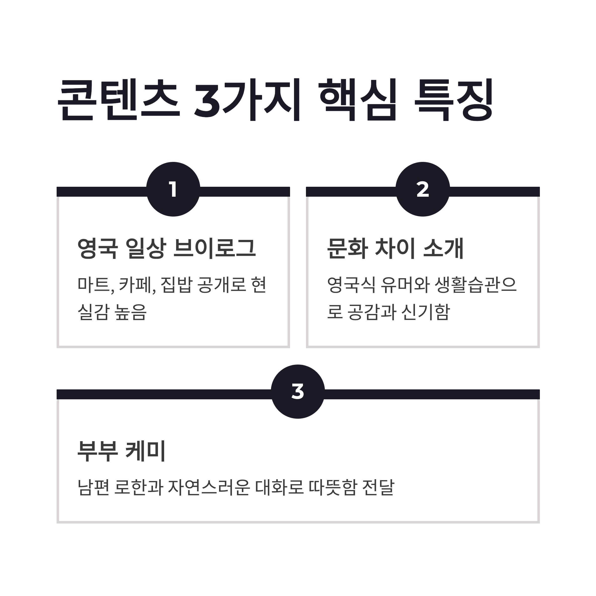 특히 영국 배우 남편 로한 씨가 방송에서 처음 공개되면서 반응이 더 커졌구요. 영국에서 7년째 거주 중이라는 점, 자연스러운 영국식 영어와 현지 문화 설명이 너무 과하지 않고 편안해서 좋았어요. 뭔가 꾸민 느낌이 아니라, 그냥 “진짜 사는 사람” 같았달까. 그게 매력이더라구요. 저도 보면서 괜히 영국 여행 뽐뿌 왔슴다 ㅋㅋ