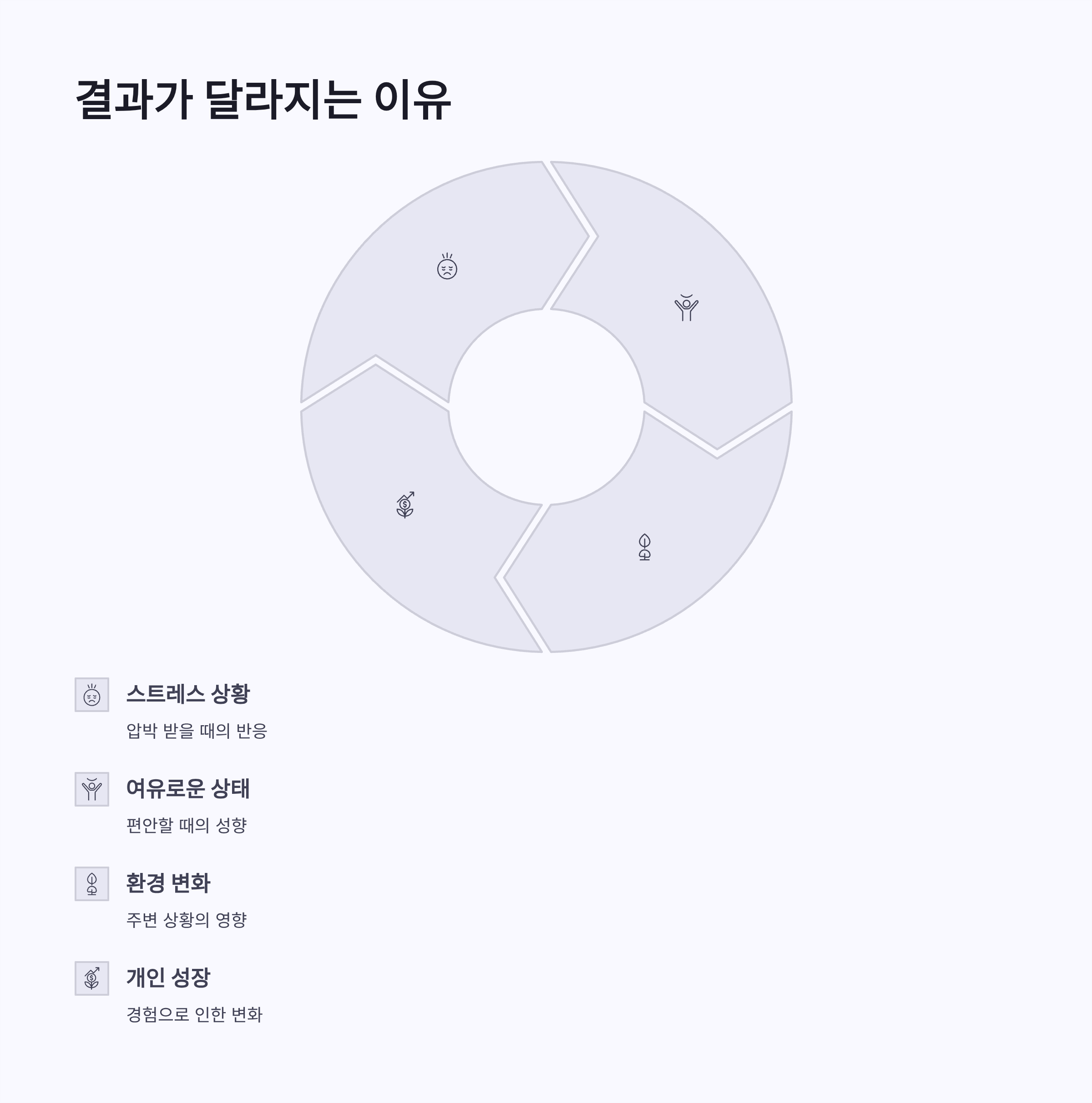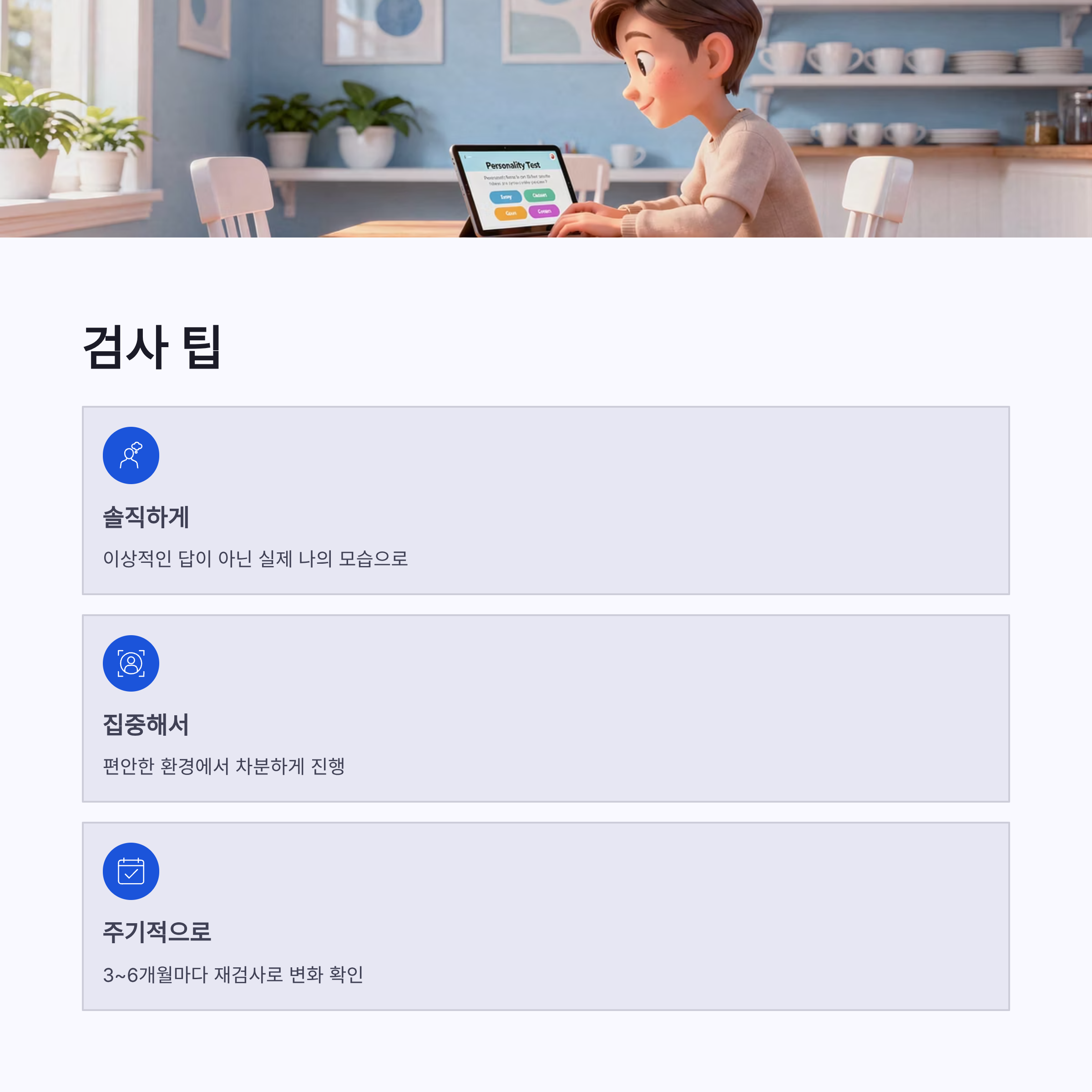 2025년 이후 MBTI 테스트 트렌드는 확실히 바뀌었어요. 예전엔 성격을 고정값처럼 봤다면, 요즘은 ‘상태값’에 가깝게 해석하더라구요. 그래서 스트레스 많을 때랑 여유 있을 때 MBTI 테스트 결과가 다르게 나오는 경우도 많아요. 이게 단점 같으면서도 장점이더라구요. 장점은 지금 나를 잘 보여준다는 거고, 단점은 결과가 헷갈릴 수 있다는 점…ㅠㅠ 그래도 새로운 엠비티아이 검사 무료 링크들은 결과 설명에 “환경에 따라 달라질 수 있음” 같은 안내가 있어서 덜 혼란스러웠어요. 요즘 친구들끼리도 “너 MBTI 뭐야?” 다음에 “언제 검사했어?”를 꼭 묻는 이유가 있더라구요 ㅋㅋ