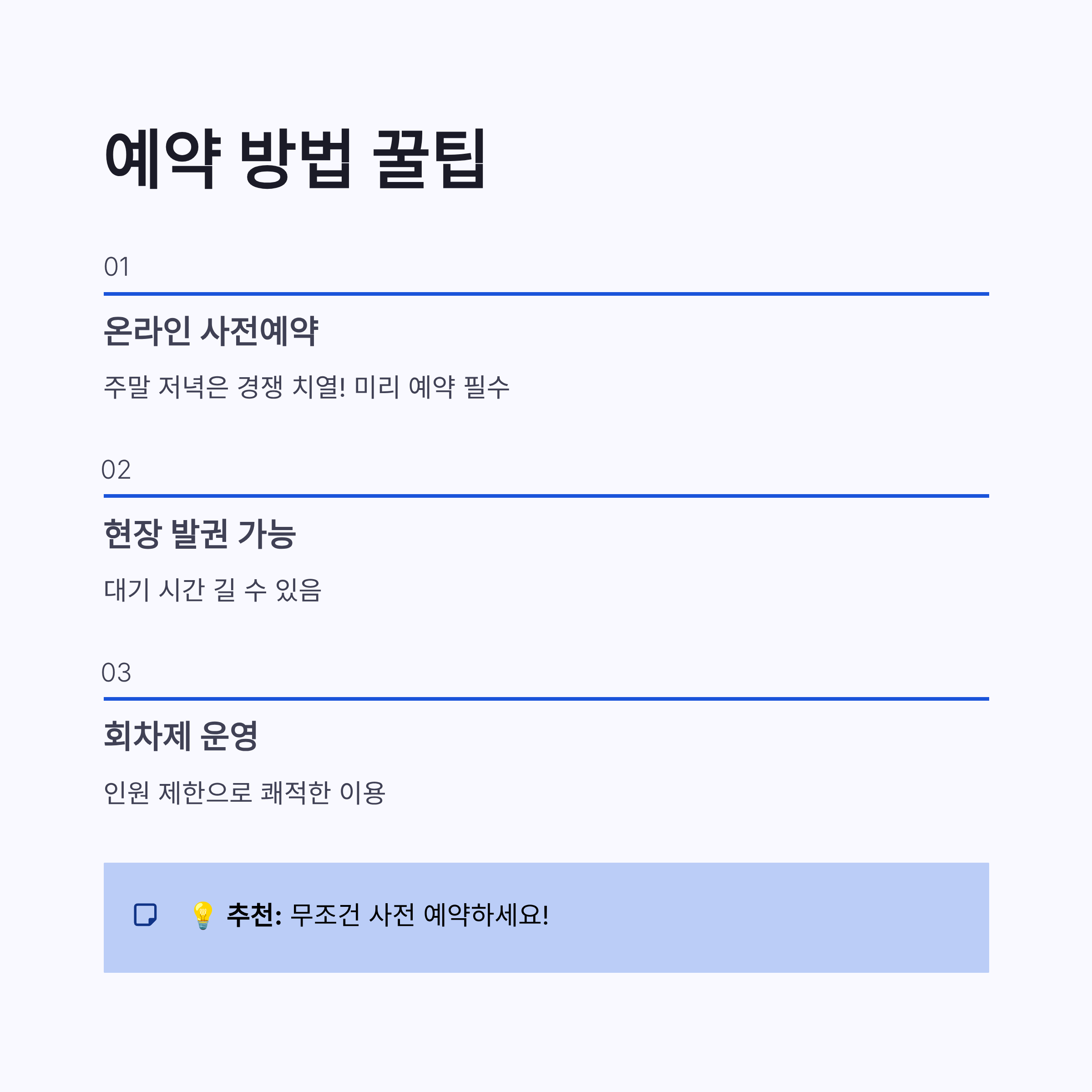 | 예약방식 | 온라인 사전예약 + 일부 현장 |