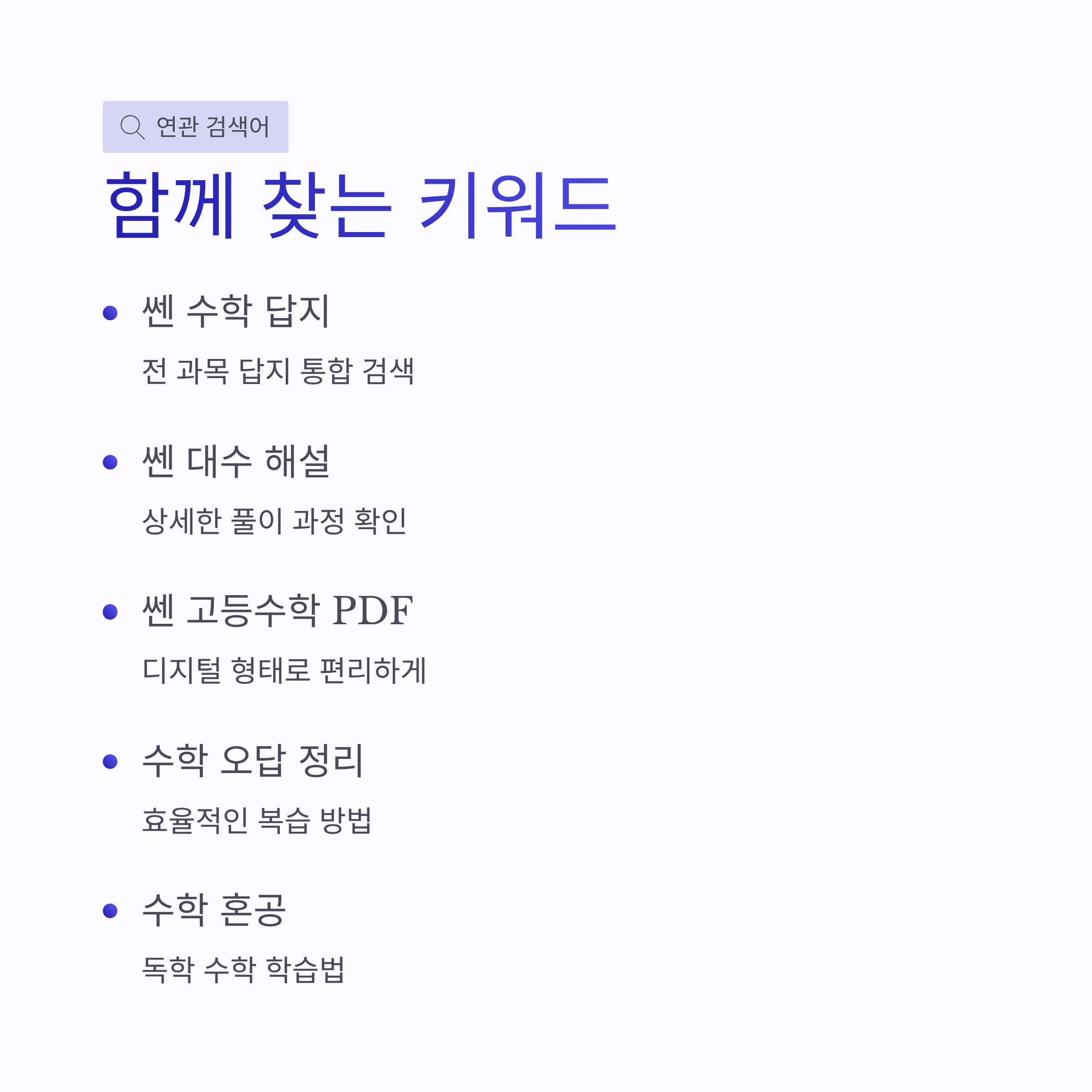개인적으로는 문제 풀고 바로 답지 보는 것보다, 체크만 해두고 나중에 쎈 대수 답지로 한 번에 복습하는 게 더 효과 있었어요. 연관해서 많이들 찾는 키워드가 쎈 수학 답지, 쎈 대수 해설, 쎈 고등수학 PDF 이런 쪽이더라구요.