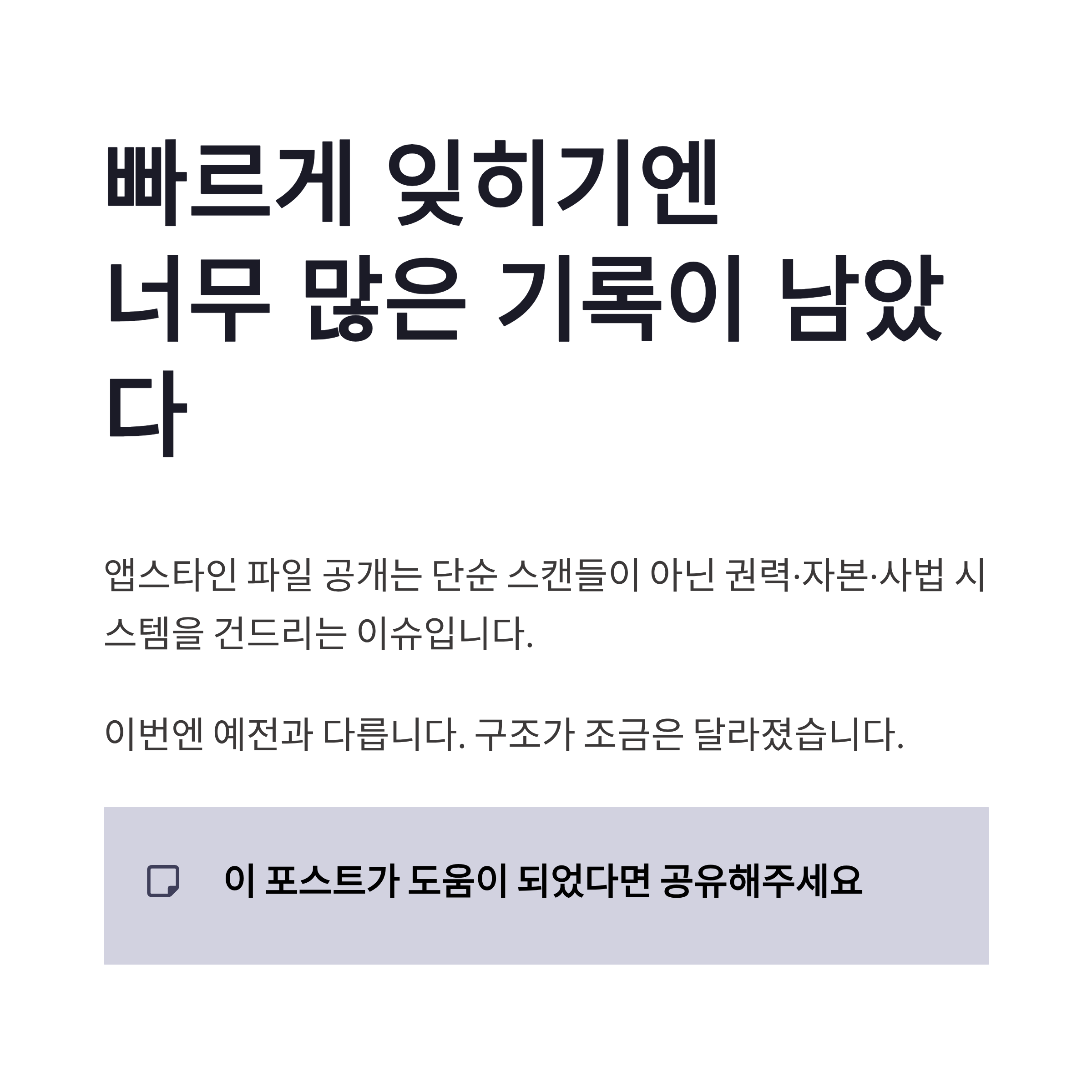 결론 앱스타인 파일 공개 이후 우리가 봐야 할 포인트