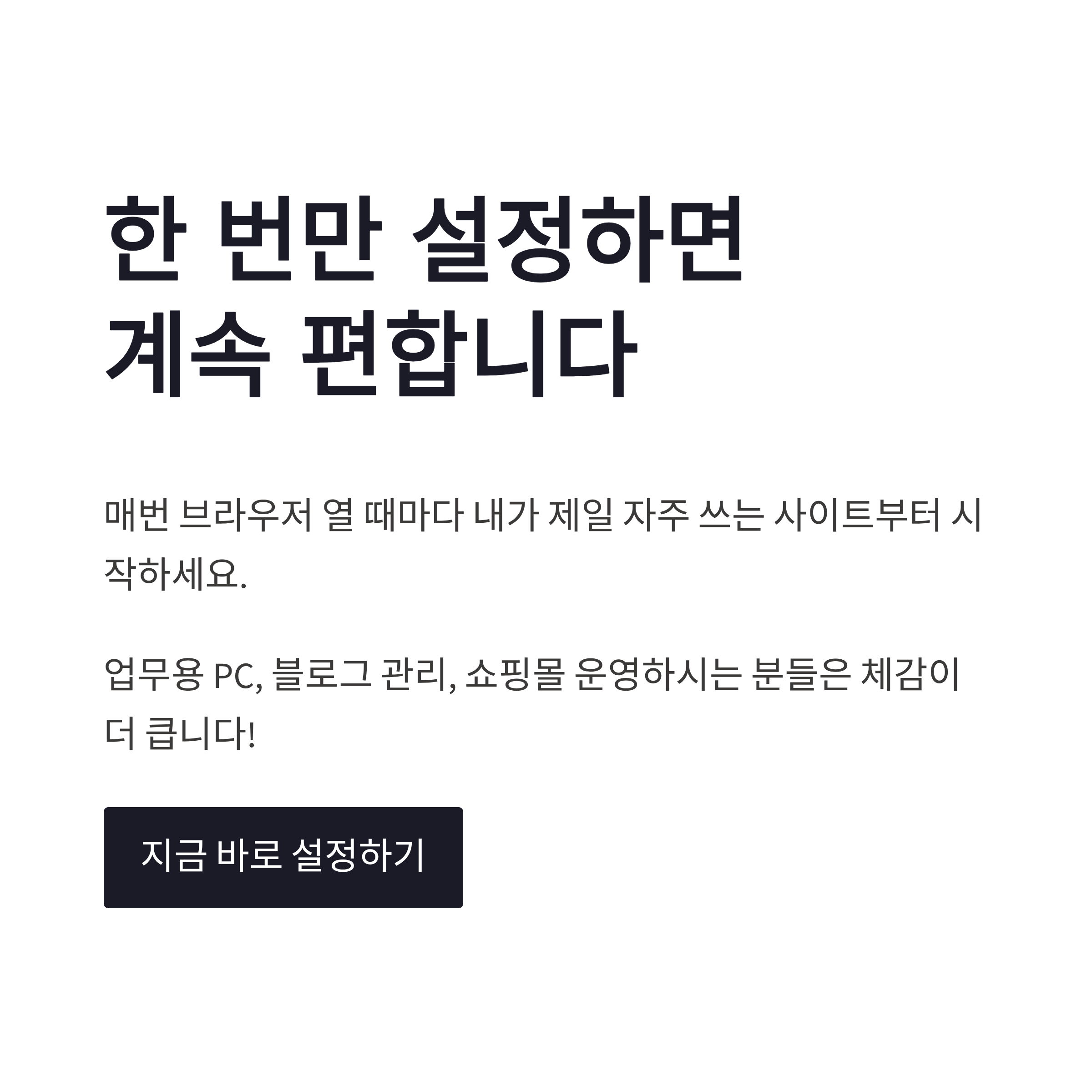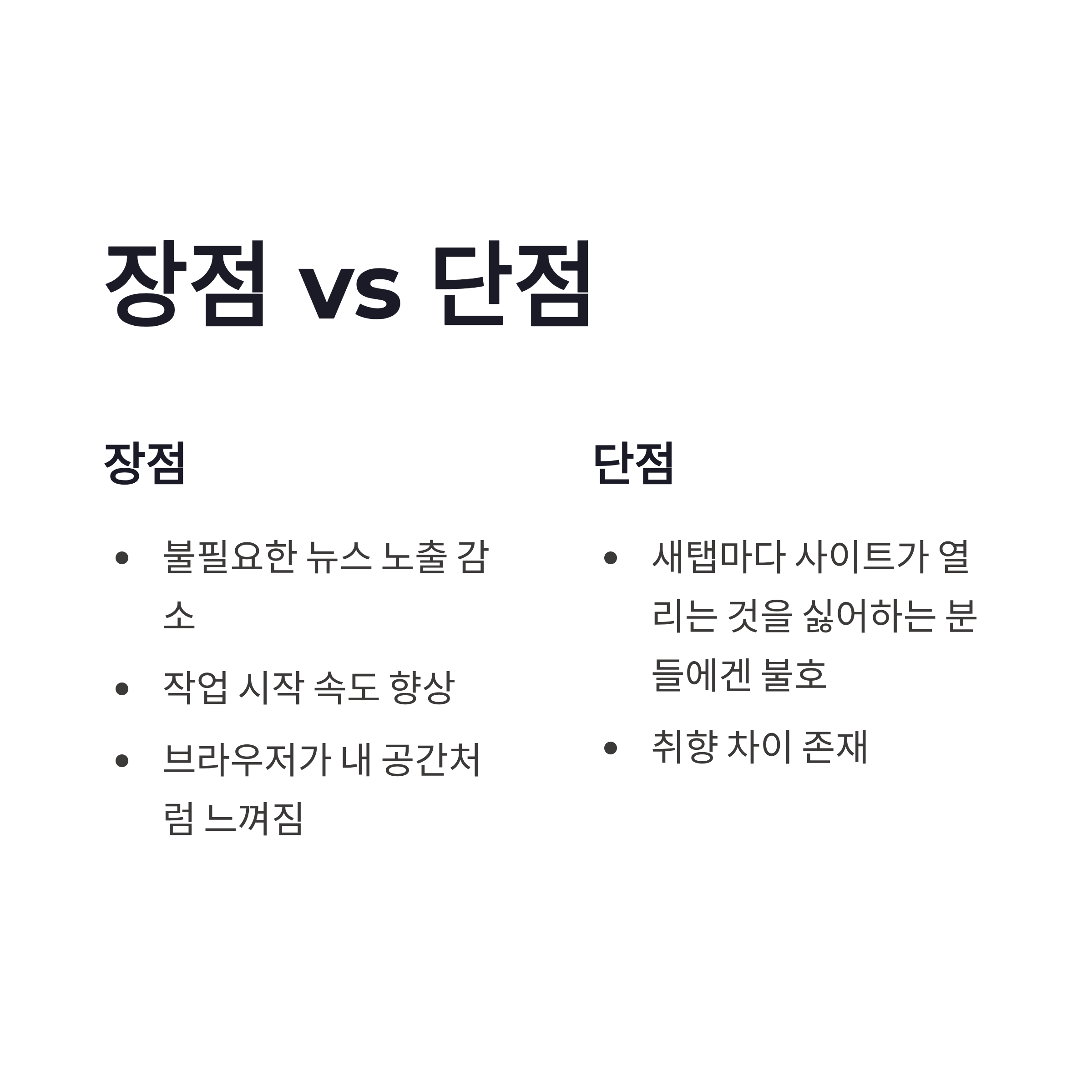 * 불필요한 뉴스 노출 줄어듦 * 작업 시작 속도 빨라짐 * 브라우저가 내 공간처럼 느껴짐