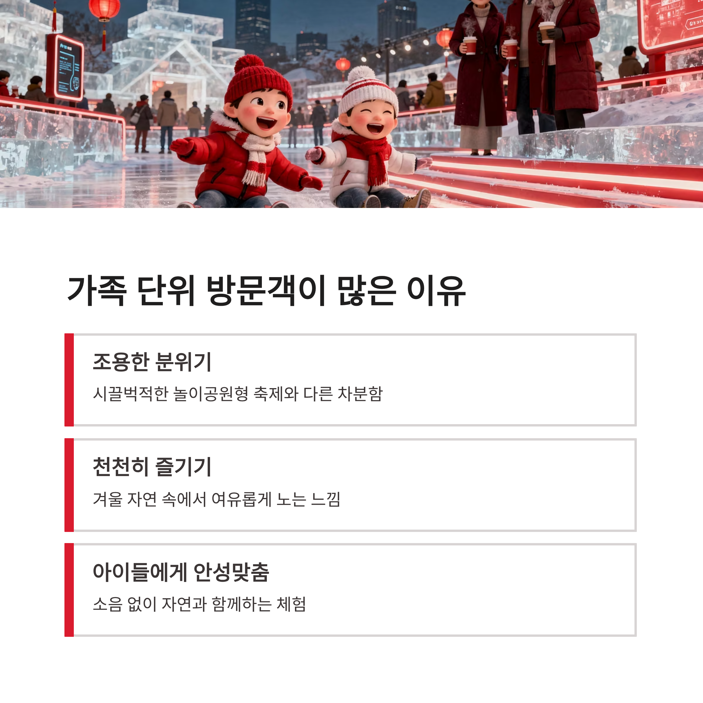 겨울 축제 이것저것 다녀봤는데요, 영양꽁꽁겨울축제 2026은 느낌이 좀 달랐습니다. 인위적으로 만든 얼음장이 아니라, 진짜 자연이 꽁꽁 얼어붙은 상태에서 즐기는 체험이라 공기부터가 다르더라구요. 아침에 차 문 열자마자 “와… 춥다” 소리가 절로 나왔는데, 그 차가움 덕분에 분위기는 확실히 살았구요. 특히 아이들 데리고 오신 가족 단위가 진짜 많았습니다. 영양꽁꽁겨울축제는 소음 심한 놀이공원형 축제랑은 결이 달라서, 시끌벅적하다기보단 겨울 자연 속에서 천천히 노는 느낌? 개인적으로 이런 쪽이 더 좋더라구요. ㅎㅎ