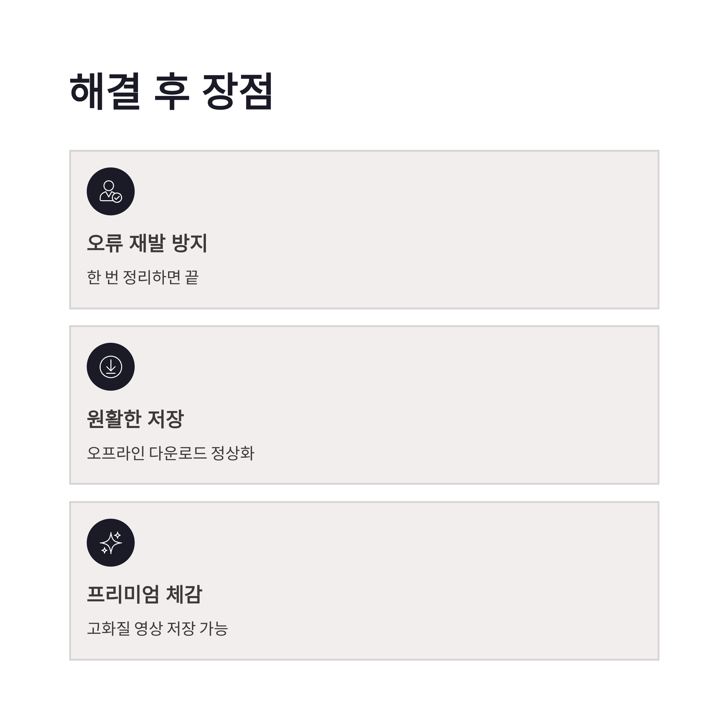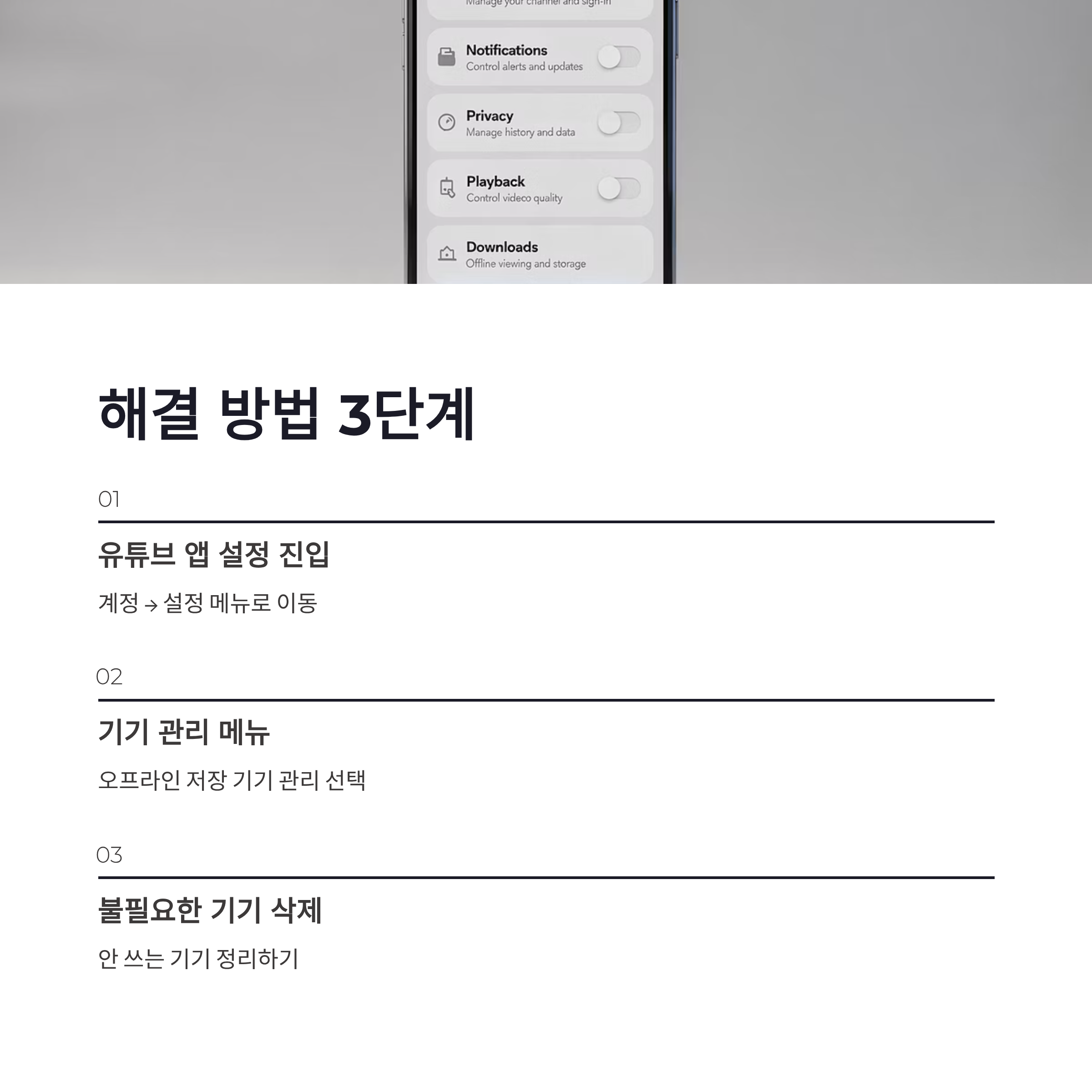해결법은 의외로 단순했어요. 1️⃣ 유튜브 앱 → 계정 → 설정 2️⃣ 오프라인 저장 기기 관리 들어가기 3️⃣ 안 쓰는 기기 삭제 이렇게만 해도 바로 풀리는 경우 많아요.