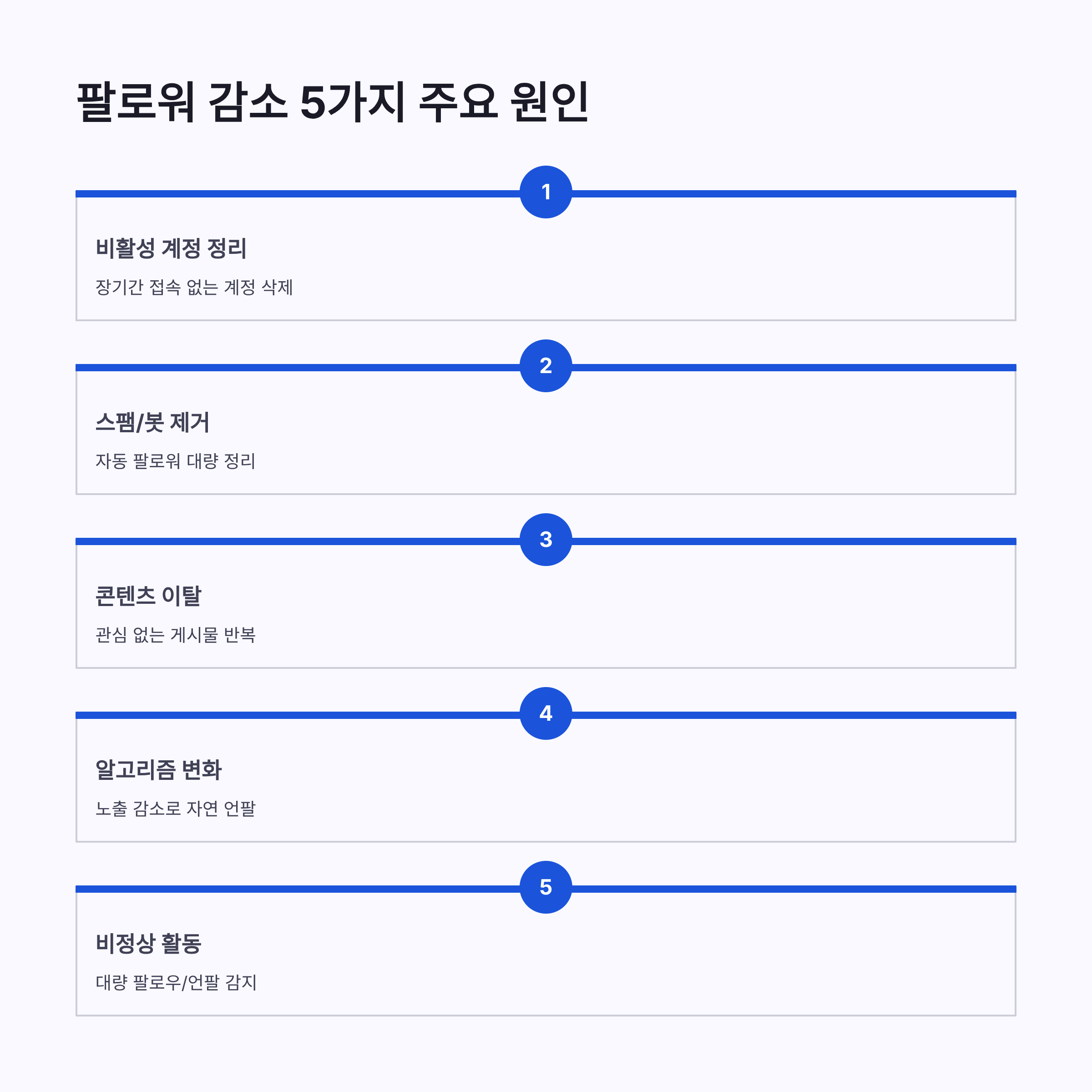 | 알고리즘 변화 | 노출 감소로 자연 언팔 | 중간 |