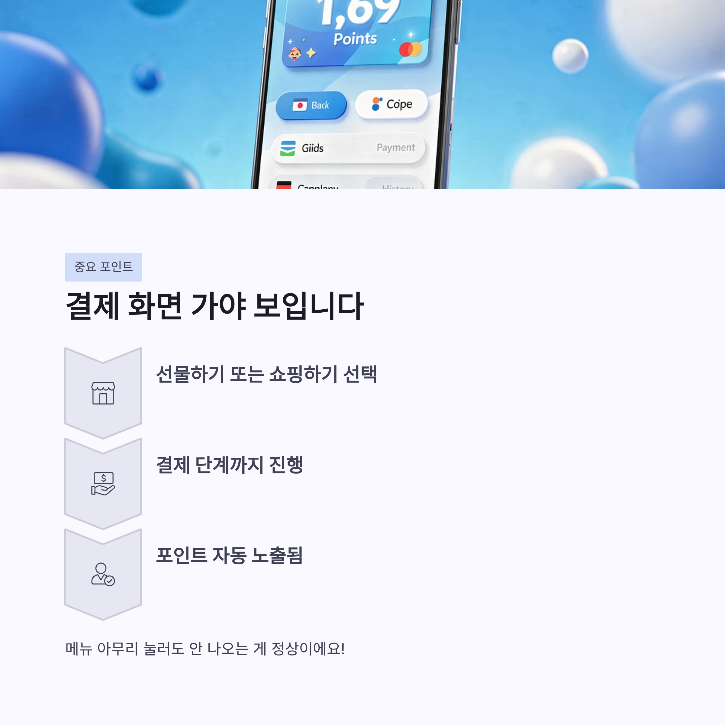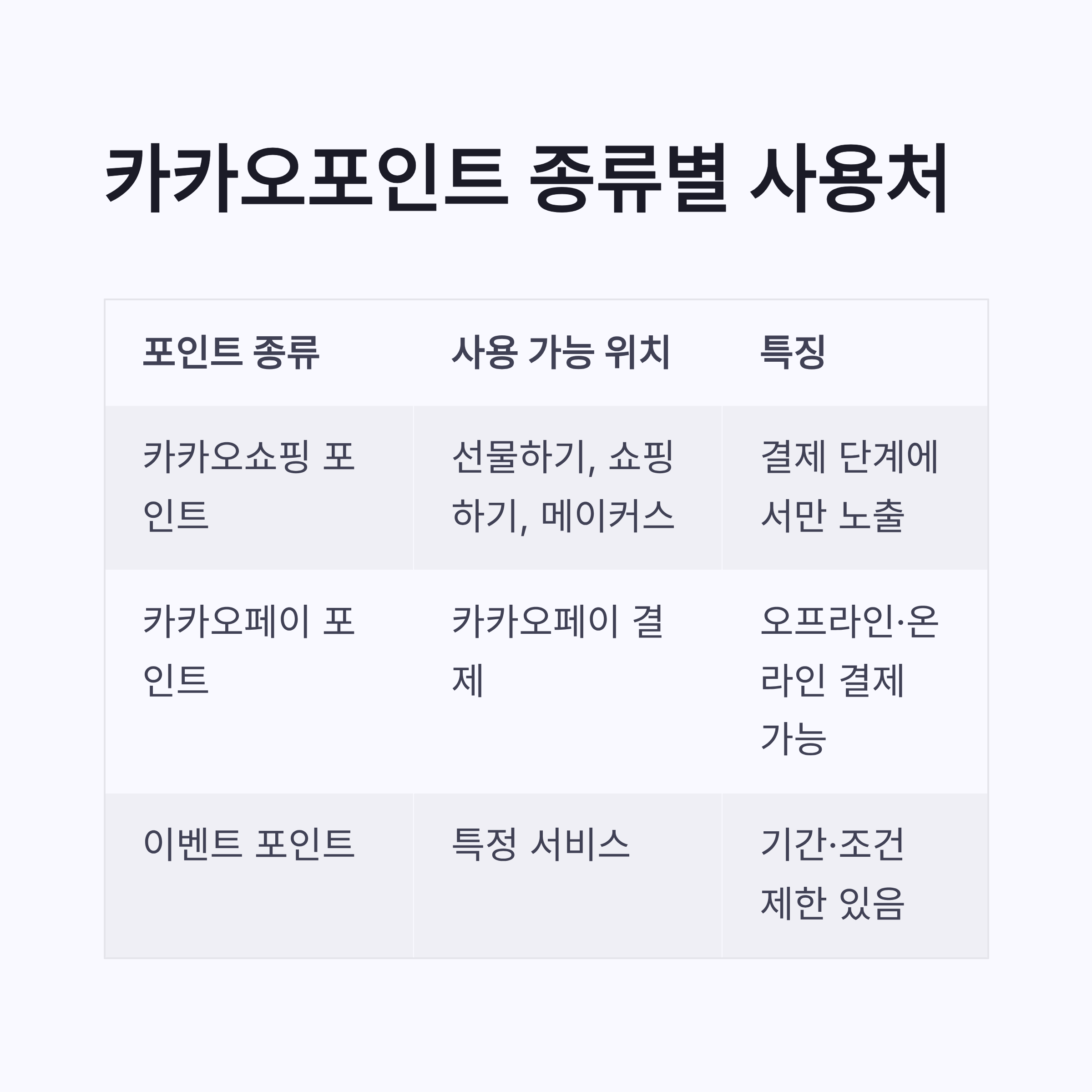 | 카카오쇼핑 포인트 | 선물하기, 쇼핑하기, 메이커스 | 결제 단계에서만 노출 |