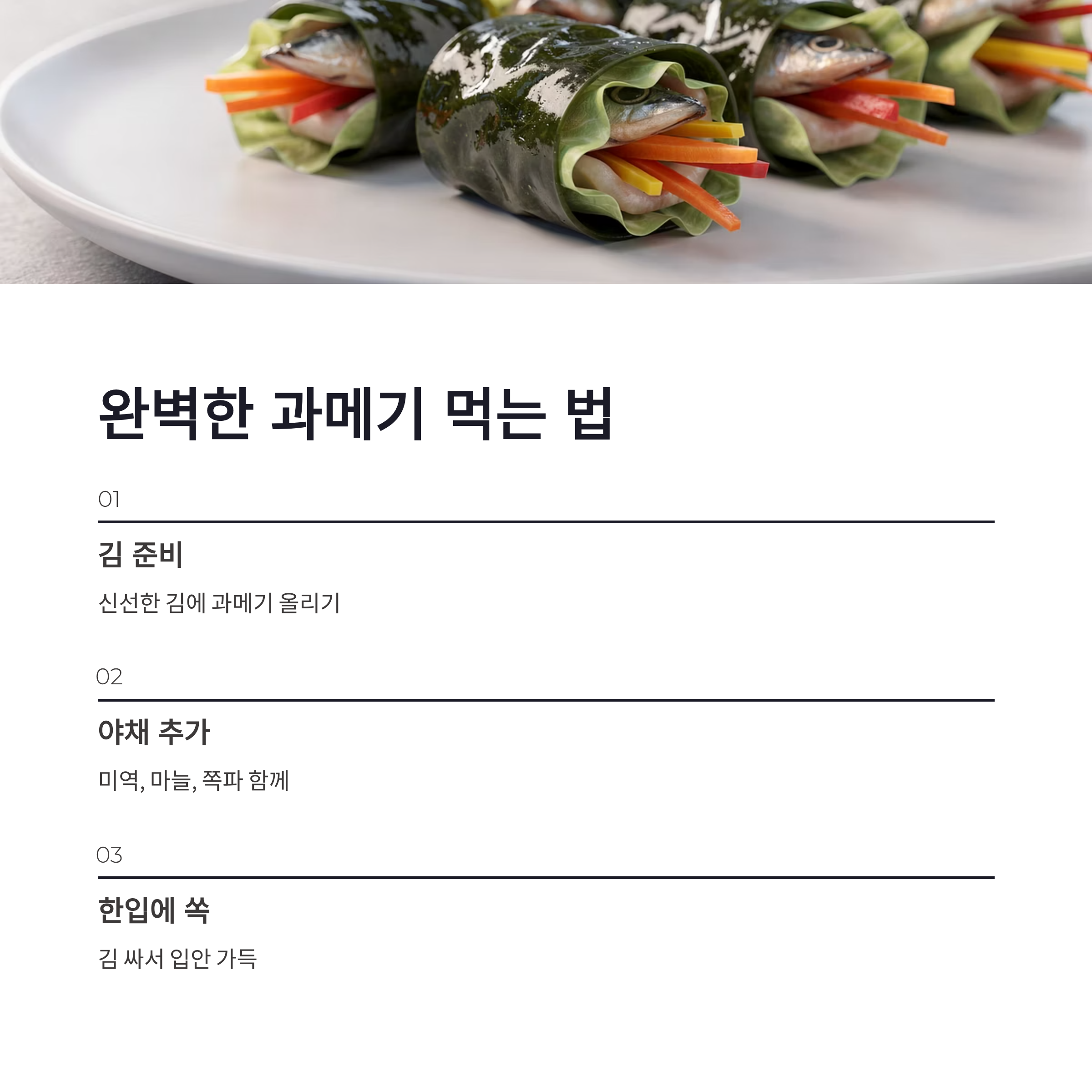 2026년 기준으로 보면 요즘 과메기 트렌드는 “덜 말리고 덜 비린” 쪽이에요. 예전처럼 질긴 과메기보다 수분감 남긴 스타일이 대세더라구요. 이 제품도 그 흐름 잘 탔어요. 장점은 확실해요. 냄새 거의 없고, 초보자도 부담 없이 먹기 좋음. 단점이라면… 기름진 스타일 좋아하는 분들에겐 살짝 담백하게 느껴질 수도 있겠더라구요. 그래도 김 싸서 미역 올리고 마늘 하나 얹으면? 아… 말 다했쥬 ㅎㅎ
