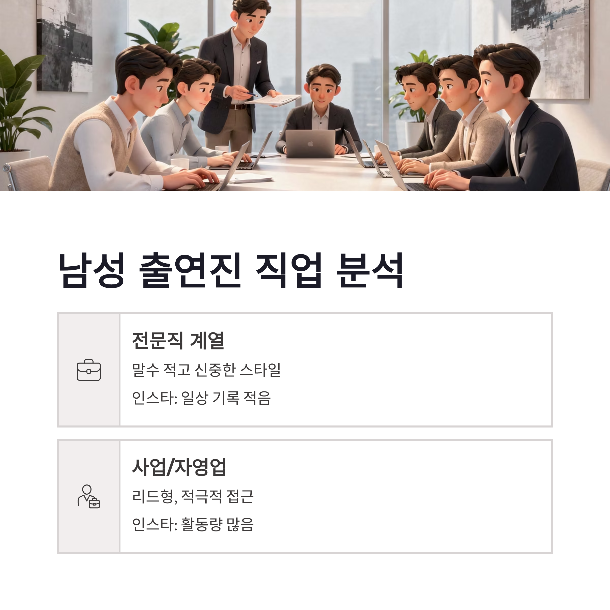 방송 보면서 제일 헷갈렸던 게 “이 사람 무슨 일 하지?” 이거였어요. 합숙맞선은 직업을 대놓고 강조하지 않는데, 대신 행동이나 대화에서 슬쩍슬쩍 나오잖아요. 그래서 따로 정리해봤슴다.