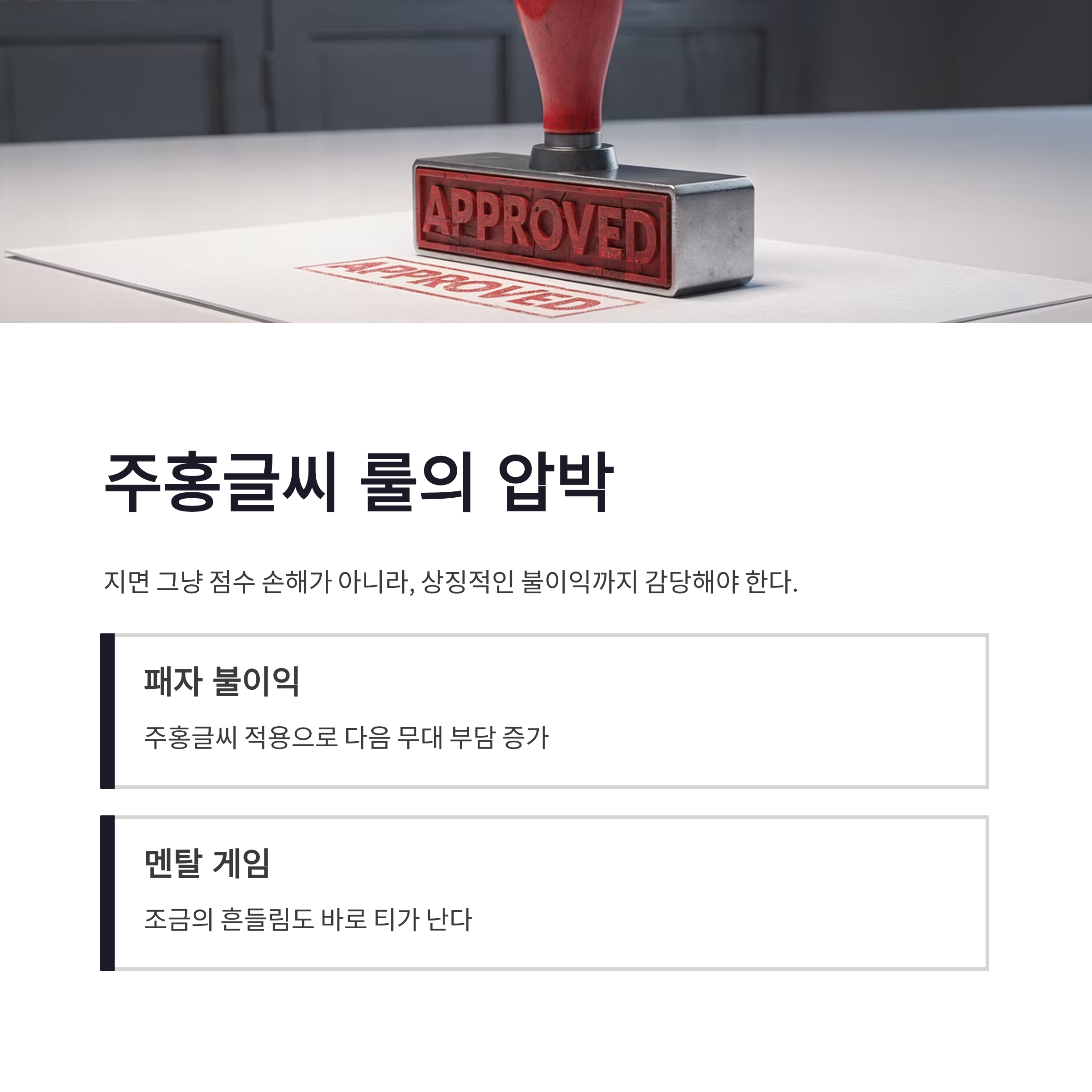 | 패자 불이익 | 주홍글씨 적용 | 다음 무대 부담 증가 |