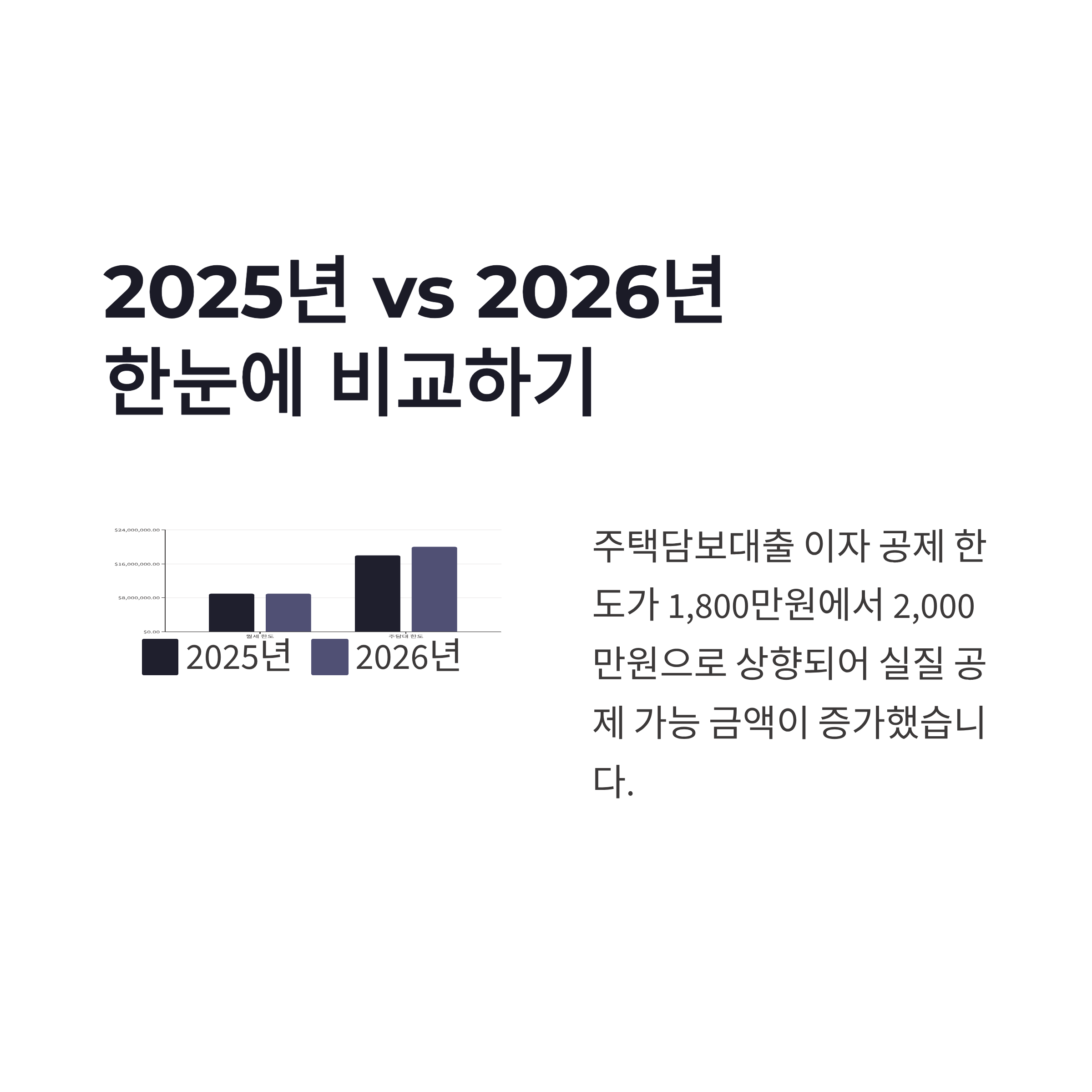 | 주담대 이자 공제 한도 | 최대 1,800만원 | 최대 2,000만원 |