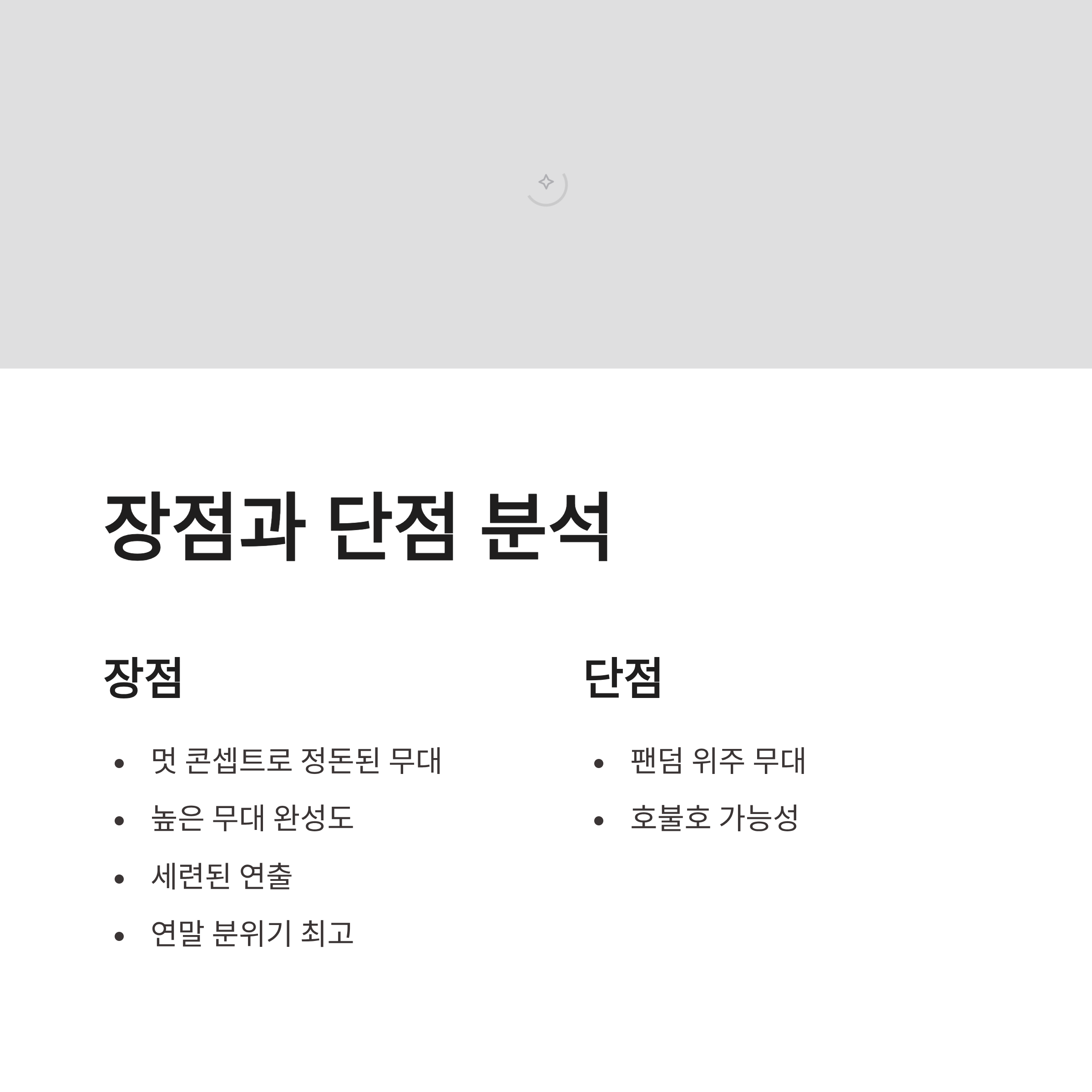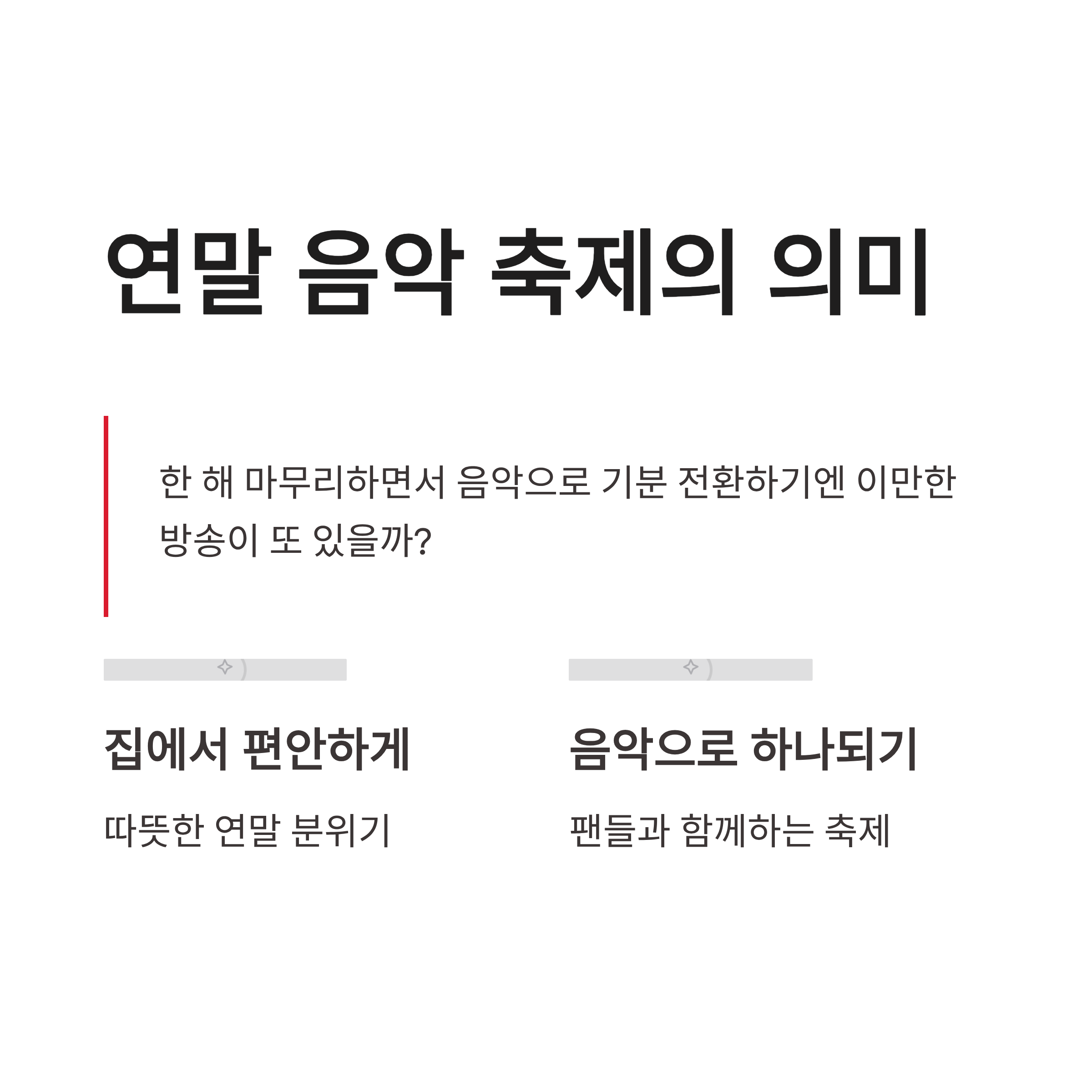 이번 2025 MBC 가요대제전 출연 라인업은 세대 조합이 꽤 균형 잡힌 편이에요. 4세대·5세대 아이돌 중심이지만, 솔로 아티스트와 밴드 무대도 적절히 섞여서 지루할 틈이 적을 것 같았어요. 장점은 멋 콘셉트 덕분에 무대 하나하나가 정돈된 느낌이라는 점, 단점이라면 팬덤 위주 무대가 많아 호불호가 조금 갈릴 수 있다는 점 정도? 그래도 연말 분위기 내기엔 2025 MBC 가요대제전만 한 게 없긴 하죠 ㅋㅋ
